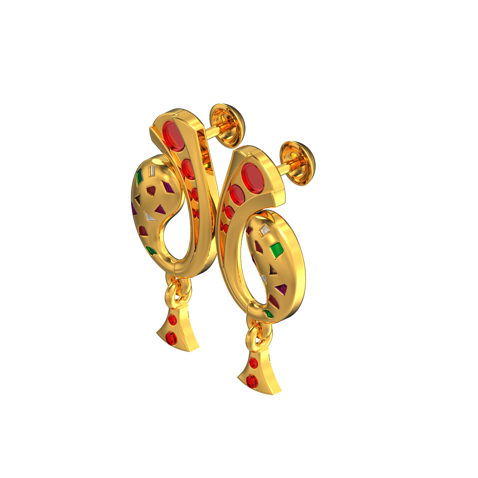 Gold Earrings – Stone Triangle Design Stud Drops 01-01